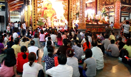 | วัดหวิงห์เงียมเต็มไปด้วยผู้คนมาทำบุญ |