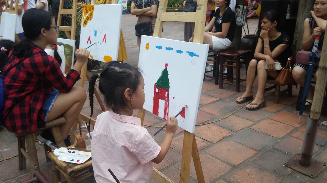 การประกวดวาดภาพสีอะคริลิกได้เสร็จสิ้นลงหลังดำเนินไปกว่า 2 ชั่วโมง ทั้งพ่อแม่และเด็กๆต่างรู้สึกมีความสุขและรอคอยการประกาศผลการประกวดในวันเสาร์ถัดไป ส่วนสำหรับคุณผู้ฟังที่สนใจกิจกรรมนี้และมีโอกาสมากรุงฮานอยในเดือนสิงหาคมนี้ อย่าลืมแวะมาเยือนสระวัน วันเมี๊ยว ก๊วกตื๋อย้ามเพื่อสัมผัสกับบรรยากาศและเข้าร่วมกิจกรรมวัฒนธรรมที่น่าสนใจนะคะ.