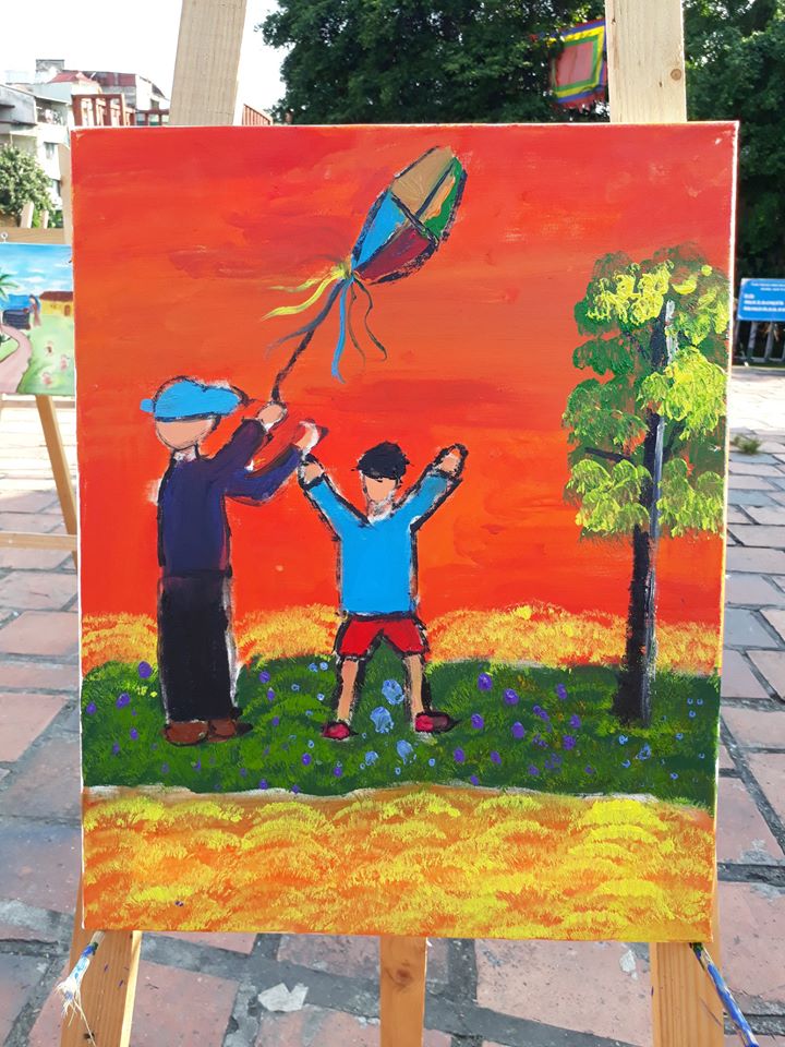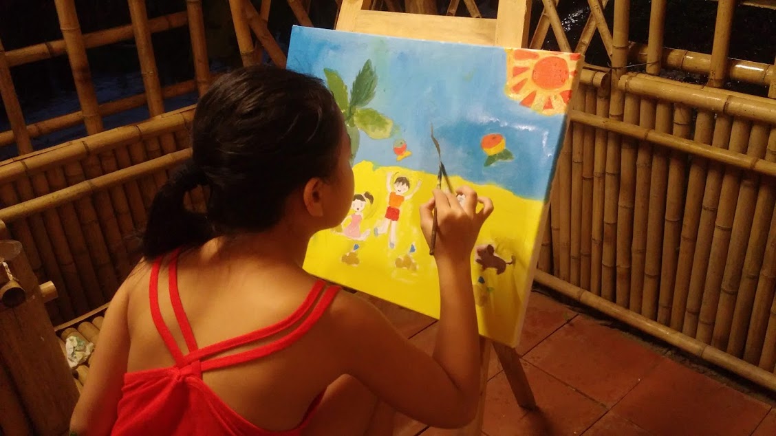 “ตอนเห็นขาตั้งวาดรูป ลูกก็ชอบมาก วันนี้ อากาศเย็นสบายทำให้ลูกรู้สึกสบายใจและมีอารมณ์ในการวาดภาพ”