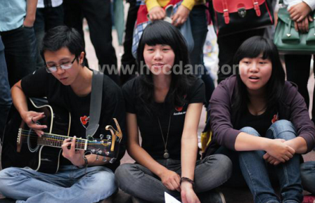 เวลาบ่ายสามโมงทุกๆวันอาทิตย์ สมาชิกของแบนด์ซูกาเดื่องโฟ้หรือการร้องเพลงตามถนนจะมาชุมนุมกันที่บริเวณอนุสาวรีย์กษัตริย์หลีท้ายโต๋ ใบหน้าของทุกคนแสดงความอิ่มเอิบใจที่ได้เจอกันภายหลังต้องเรียนหนังสือและทำงานอย่างเคร่งเครียดมา ๑ สัปดาห์ สมาชิกที่มาร่วมวงร้องเพลงในแต่ละครั้งมีจำนวนไม่แน่นอนแต่บางครั้งมีถึง ๑๐๐ คน พวกเขาเป็นนักศึกษา ข้าราชการในสาขาอาชีพที่แตกต่างกันแต่ต่างมีความหลงไหลในดนตรีและกีตาร์ นอกจากนี้ยังมีคนต่างจังหวัดเช่นท้ายเหงวียนและไฮฟองมาเข้าร่วมด้วย ซึ่งพวกเขาต้องขึ้นรถเมล์มาและเมื่องานเสร็จก็จะขึ้นรถเมล์กลับบ้าน นายวูดดี้ ชาวอังกฤษกำลังชมการแสดงของแบนด์ซูกาเดื่องโฟ้อย่างใจจดใจจ่อมือทำตามจังหวะเพลงคุยกับพวกเราว่า “ ผมเคยชมการแสดงของศิลปินตามถนนในหลายประเทศ การแสดงของพวกเขาในวันนี้ไพเราะและประทับใจ มีสมาชิกเข้าร่วมจำนวนมากที่ยังหนุ่มและอัจฉริยะ และยังมีสาวหลายคนสามารถเล่นกีต้าร์ได้ การได้ชมและฟังเพลงสดๆในบริเวณทะเลสาบหว่านเกี๊ยมหรือทะเลสาบคืนดาบนั้นสร้างความรู้สึกแปลกใหม่ให้กับผม ”