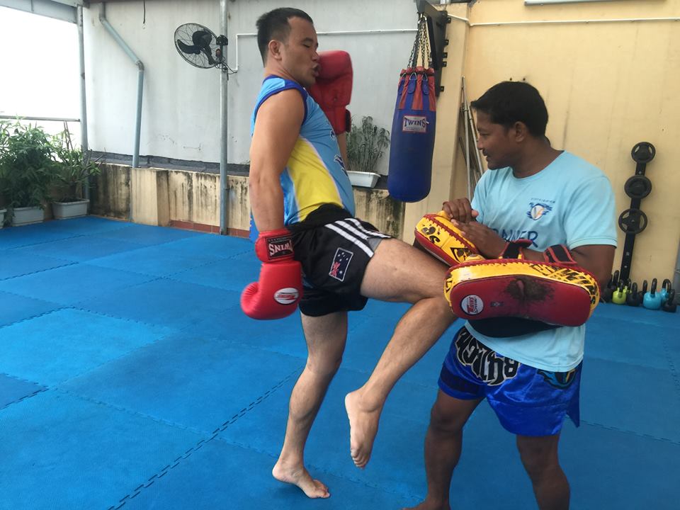 เวลา 18 น. ในห้องฝึกชั้น 2 ที่กว้างประมาณ 70 ตารางเมตรที่มีเป้าซ้อมอันเดียวพร้อมกับพัดลมติดผนัง นักเรียนเกือบ 30 คนที่ใส่ชุดกีฬาและสวมนวมกำลังวิ่งรอบห้องด้วยเท้าเปล่าวบนพื้นผ้าใบสีน้ำเงิน ต่อจากนั้นก็วิดพื้นและวอร์มร่างกายประมาณ 5-7 นาที แล้วยืนกันเป็นคู่ๆรับฟังคำสอนของครูฉัตรชัย ดำสงค์ ครูมวยที่มาจากประเทศไทย ครูฉัตรชัยมีร่างกายสันทัดและมีผิวคล้ำเผยว่า เขาเล่นมวยไทยมา 30 ปีแล้วและต่อยมวยไทยเป็นเวลา 10 ปี “ ผมมาสอนมวยไทยที่นี่เพื่อเป็นการเผยแพร่ศิลปะมวยไทยที่ตอนนี้ก็เป็นดังทั่วโลก อยากให้ทุกประเทศได้รู้จักมวยไทยเยอะๆครับ ”