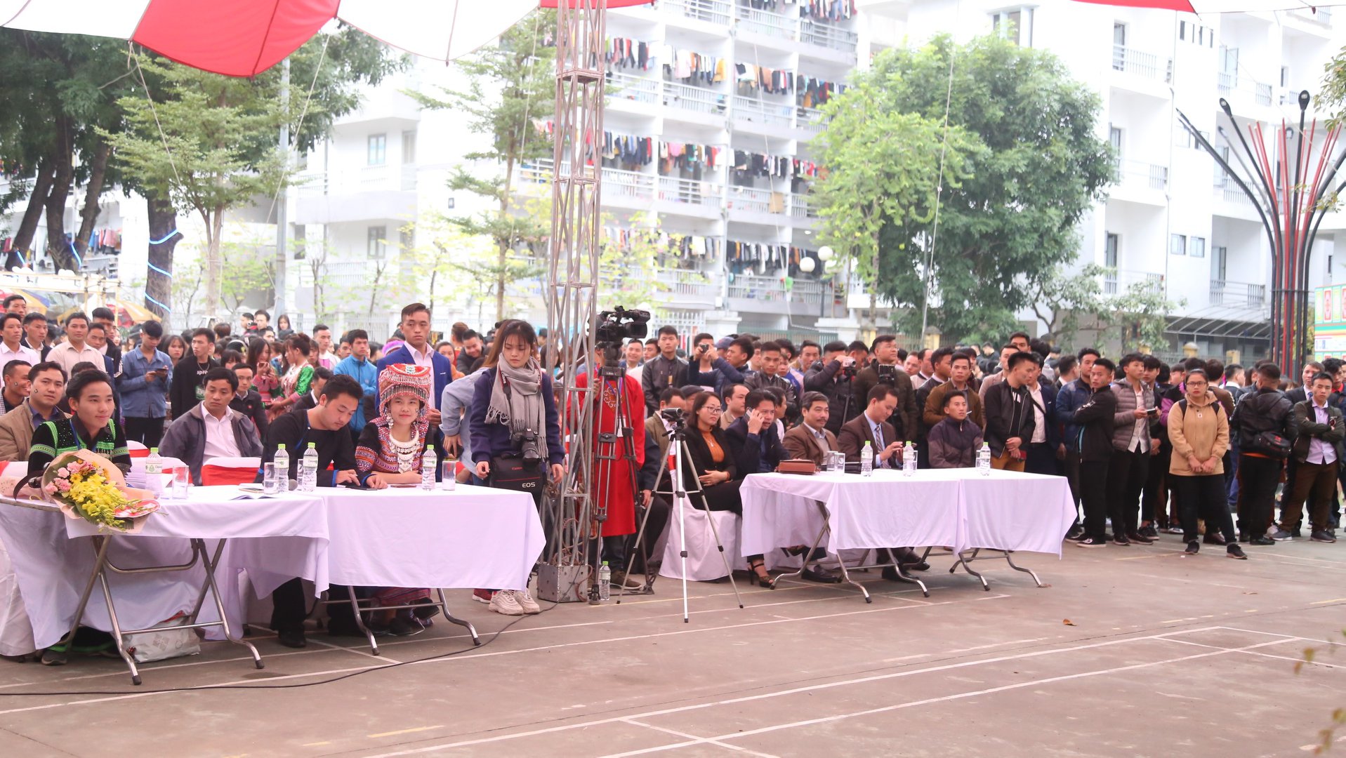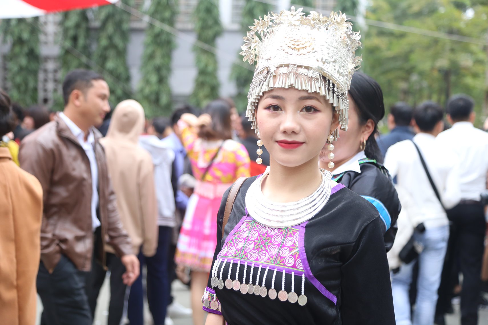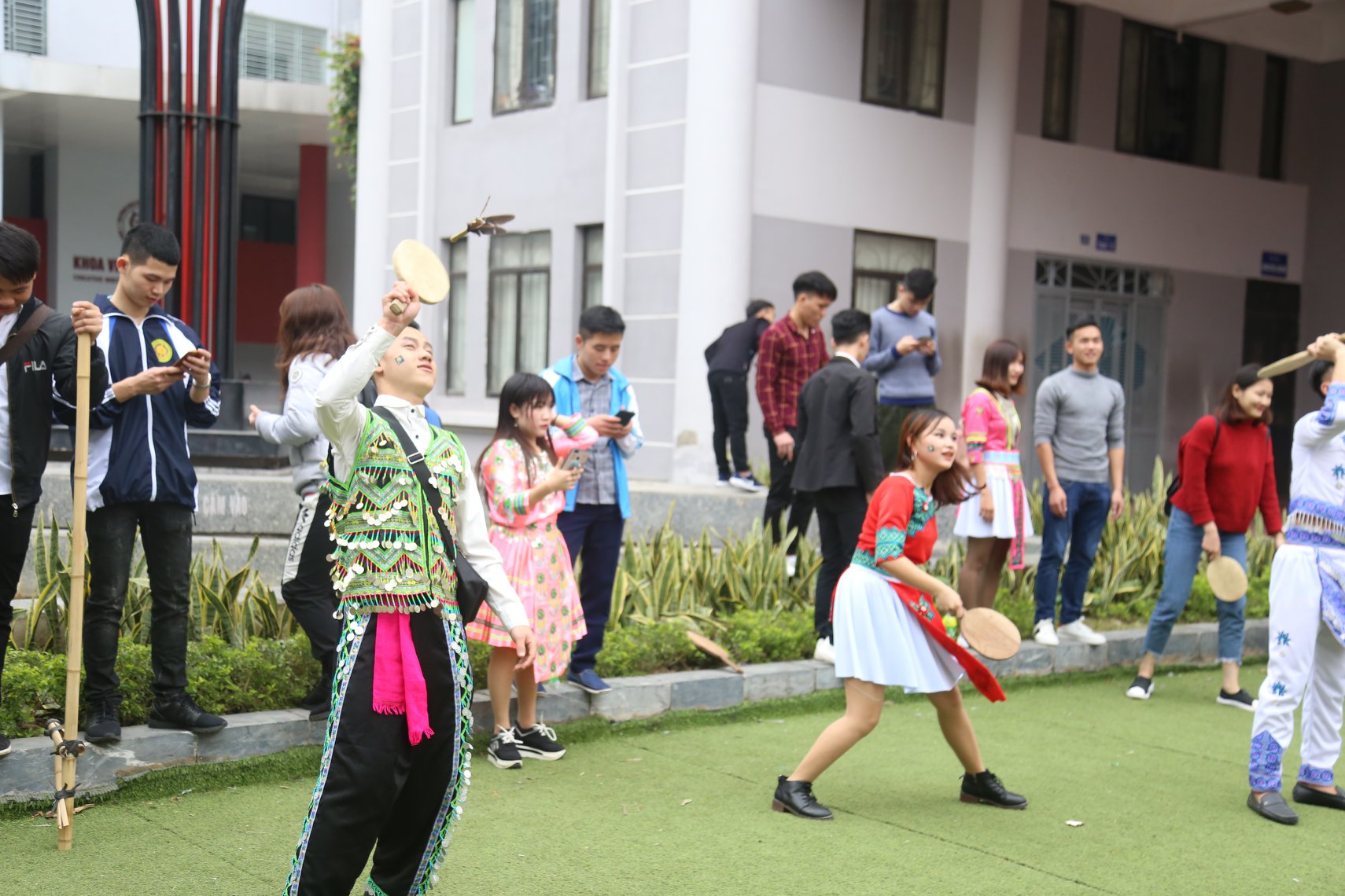 ท่ามกลางสภาพอากาศหนาว โดยอุณหภูมิอยู่ที่ 17-18 องศาเซลเซียสช่วงก่อนถึงตรุษเต๊ต ที่ มหาวิทยาลัยวันฮว้า กรุงฮานอย มีบรรยากาศที่คึกคักเป็นอย่างยิ่งเพราะได้มีการจัดกิจกรรมฉลองเทศกาลตรุษเต๊ตของชนเผ่าม้ง โดยผู้เข้าร่วมงานส่วนใหญ่ใส่ชุดแต่งกายที่มีสีสันฉูดฉาดสวยสด มีลวดลายพื้นเมือง ใส่เครื่องประดับเงินและผ้าคลุมศีรษะที่เป็นเอกลักษณ์ของชนเผ่าม้ง โดยในบริเวณเวทีกลางแจ้งที่กว้างประมาณ 200ตารางเมตร มีผู้ชมกว่า 400คนกำลังร้องและเต้นตามจังหวะเพลง“Happy new year”ที่ขับร้องเป็นภาษาม้งโดยนักศึกษา 13คนในชุดแต่งกายสีดำและมีลวดลายพื้นเมืองที่เป็นเอกลักษณ์ของชาวม้งดำในจังหวัดลาวกาย คุณเหล่าถิฮวา ชาวม้งดำจากเมืองซาปา จังหวัดลาวกายได้เผยว่า“พวกเราสวมใส่ชุดแต่งกายของชาวม้งจากเมืองซาปาและอำเภอต่างๆ เช่น อำเภอบ๊าดซาด อำเภอซีมากายและอำเภอบั๊กห่า ดิฉันเป็นชาวม้งดำจากเมืองซาปา แต่ชุดแต่งกายที่กำลังสวมใส่ไม่ใช่ชุดแต่งกายของชนเผ่าม้งในเมืองซาปาเพราะเพื่อนๆในอำเภอบ๊าดซาด อำเภอซีมากายก็อยากลองใส่ชุดแต่งกายของชาวม้งในเมืองซาปา ดังนั้น พวกเราจึงแลกชุดแต่งกายกันเพื่อศึกษาเรียนรู้ด้านวัฒนธรรม”