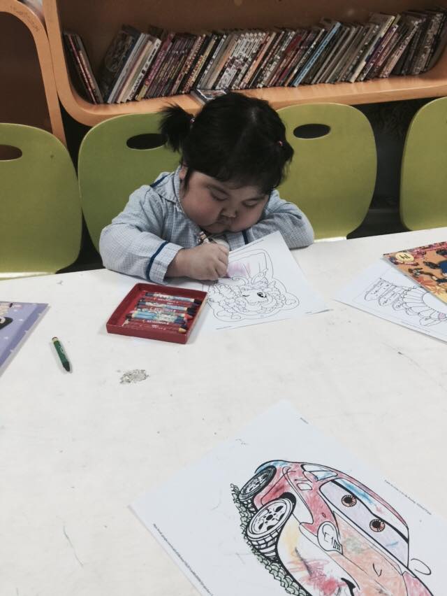 ในจำนวนเด็กที่กำลังฝึกเรียนวาดภาพวันนี้ มีผู้ป่วยเด็กอายุต่ำที่สุดคือ 4 ขวบและสูงที่สุด 13 ปี เด็กหญิง หว่า อายุ 6 ปี กำลังนั่งใกล้หน้าต่าง ฝึกวาดเจ้าหญิง Elsa ส่วนคุณพ่อของเธอก็กำลังดูเธอวาดภาพ“ลูกของผมมารักษาตัวที่นี่เมื่อเดือนมิถุนายนปี 2016 พวกเรามาที่นี่เฉลี่ยเดือนละ 2 ครั้ง ลูกป่วยเป็นโรคไข้เลือดออก กลุ่มผู้ช่วยเหลือเพื่อการกุศลมาที่นี่เพื่อให้กำลังใจญาติมิตรและผู้ป่วยเด็กให้ก้าวรุดหน้าไปในชีวิต ป่วยเป็นโรคนี้ส่งผลกระทบต่อจิตใจ เศรษฐกิจและไม่มีโอกาสสร้างฐานะ เมื่อห้องสมุดเปิด ลูกก็มาที่นี่ ลูกมาที่นี่หลายครั้งแล้วและสนิทกับอาสาสมัครหลายคน”