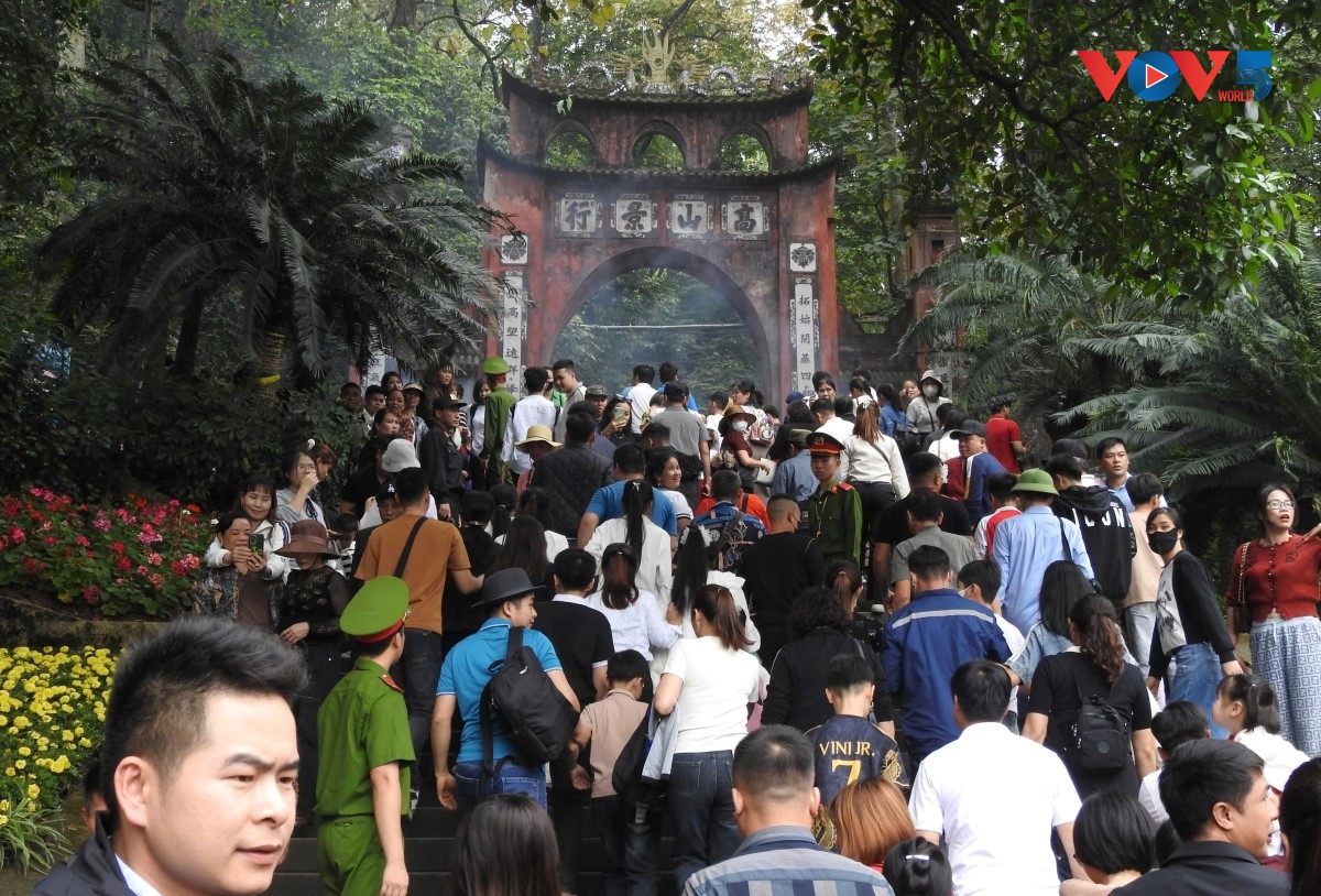 ตั้งแต่เช้าตรู่ ผู้แสวงบุญได้มาเดินเรียงรายเป็นแถวยาวตั้งแต่เชิงเขาเหงียะหลิงอันศักดิ์สิทธิ์ไปจนถึงวัดเถือง ซึ่งเป็นสถานที่สักการะบูชาบรรดากษัตริย์หุ่ง ผู้สร้างชาติวันลาง ซึ่งเป็นรัฐแห่งแรกของประชาชาติหลากเวียด โดยขบวนผู้แสวงบุญนี้ไม่เพียงแต่มาจากจังหวัดหรือเมืองใกล้เคียงเท่านั้น หากยังมีหลายคนที่เดินทางมาไกลจากภาคกลาง จากพื้นที่ภาคใต้ที่อยู่ห่างไกลหรือจากเขตเขาชายแดนทางตอนเหนือเพื่อมาขอพรที่แผ่นดินอันศักดิ์สิทธิ์นี้