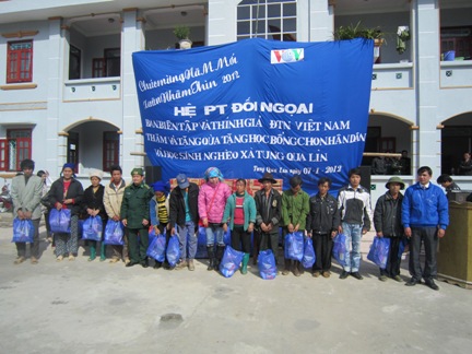 น้ำใจเอื้ออารีของผู้สื่อข่าวและเจ้าหน้าที่สถานีวิทยุเวียดนามที่มีต่อชาวบ้านในเขตเขา Tung Qua Lin ได้นำไออุ่นมาให้แก่พวกเขา ไม่ว่าเด็กหรือผู้ใหญ่ทุกคนต่างดีใจที่ได้รับแจกเสื้อผ้าและซองแต๊ะเอียในโอกาสต้นปีใหม่ 2012 รวมทั้งข้าวต้มมัดใหญ่ ขนมนมเนยเพื่อฉลองตรุษเต๊ด นาย Giang Chang Dinh เมื่อมารับของขวัญจากสถานีวิทยุเวียดนาม ณ ที่ทำการตำบลได้กล่าวถึงความรู้สึกของตนว่า “ผมดีใจและตื้นตันใจมากที่ได้รับความช่วยเหลือจากสถานีวิทยุเวียดนามในโอกาสตรุษเต๊ดเพื่อให้พี่น้องในเขตเขาได้ฉลองตรุษเต๊ดอย่างอบอุ่น”