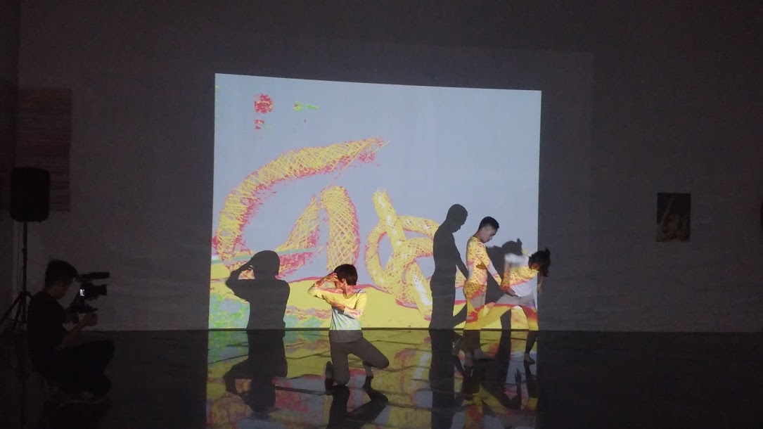 ท่ามกลางดนตรีที่ประพันธ์โดยนักดนตรี หวูเหยิ่ตเติน ศิลปิน 3 คน โดยเป็นศิลปินหญิง 2 คนและศิลปินผู้ชาย 1 คนที่สวมชุดเต้นรำร่วมสมัยสีขาวกำลังเคลื่อนไหวร่างกายตามภาพถ่ายเกี่ยวกับประติมากรรมไม้ไผ่ที่ถูกฉายบนผนัง โดยสีสันของกระบอกไผ่ที่ถูกจัดแสดงสะท้อนเงาบนชุดและร่างกายของศิลปินบวกกับการเคลื่อนไหวตามจังหวะดนตรีได้ทำให้ทั้งคนทั้งภาพและสิ่งของวัตถุได้ผสานเข้ากันอย่างกลมกลืน เวทีการแสดงอยู่ใกล้โซนจัดแสดงประติมากรรมไม้ไผ่ 10 ชิ้นที่มีรูปทรงกระบอก ยาวกว่า 1 เมตร เส้นผ่าศูนย์กลางประมาณ 15 เซ็นติเมตรและถูกวางบนชั้นไม้ไผ่ สูง 1 เมตร สำหรับภาพถ่ายประติมากรรมไม้ไผ่นั้น มีสีฉูดฉาดมากกว่าผลงานประติมากรรมในโซนจัดแสดงเนื่องจากเป็นภาพที่ถูกตกแต่ง