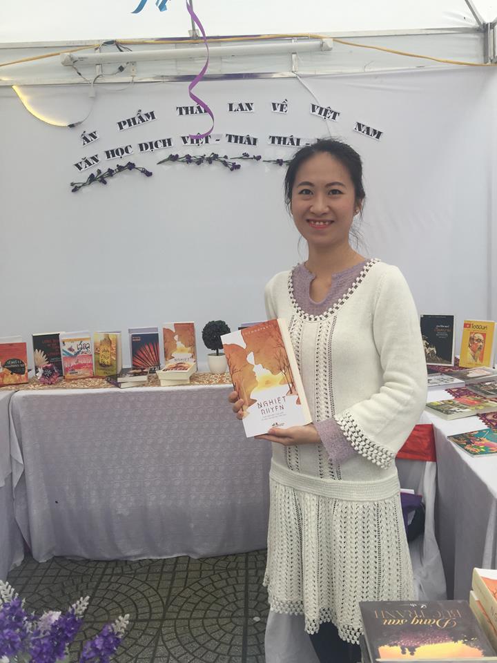 ในบูธที่กว้างประมาณ 5 ตารางเมตรของงานแสดงสินค้าไทย เกิ๋มตู๊ นักแปลนวนิยายคู่กรรมหรือในภาษาเวียดนามเรียกว่าเหงียดเยวียนกำลังแจกลายเซ็นให้แก่ผู้อ่าน บนโต๊ะที่จัดเป็นรูปตัว U มีหนังสือเล่มต่างๆ ทั้งของเวียดนามและไทยวางสลับกันไป ซึ่งนอกจากนวนิยายคู่กรรมแล้วก็ยังมี