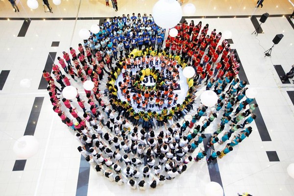 การจัดนักศึกษาเรียงเป็นรูปดอกไม้ที่ใหญ่ที่สุดในวันครูเวียดนาม 20 พฤศจิกายน (Photo kenh14.vn)