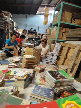 | กลุ่มอาสาสมัครได้รวบรวมหนังสือ ทำการแบ่งประเภท (Photo:thanhnien ) |