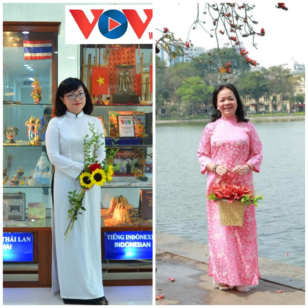 นาง ฝ่ามมิงเหงวียด (ซ้าย) หัวหน้าแผนกอาเซียน 2 และหัวหน้าภาคภาษาไทยตั้งแต่ปี 2012 จนถึงปัจจุบันและนาง เลแทงเหวี่ยน หัวหน้าภาคภาษาไทยระยะปี 2004-2008 และระยะปี2012-2013 |