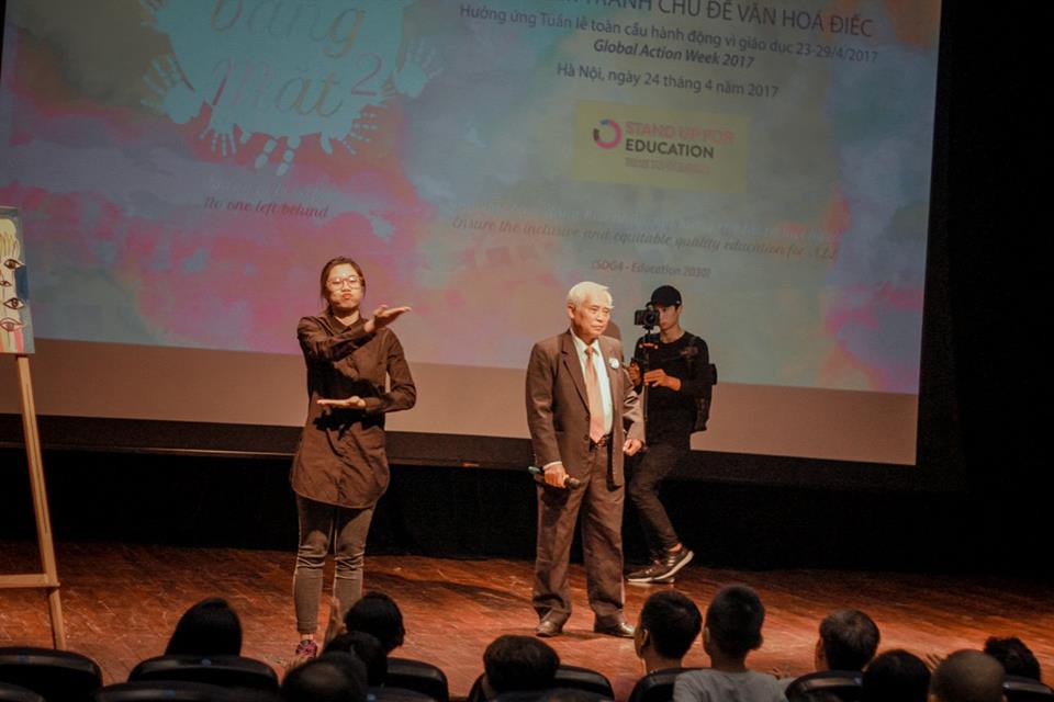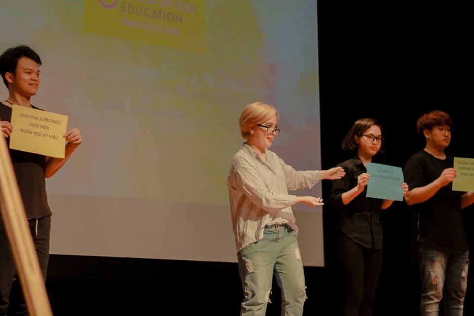 ผู้อำนวยการโรงเรียนมัธยมศึกษาตอนต้นสาด่าน ซึ่งเป็นหนึ่งในโรงเรียนของรัฐที่เปิดสอนหนังสือให้แก่เด็กหูหนวกในกรุงฮานอยได้เผยว่า "ทางโรงเรียนเปิดรับสมัครเด็กนักเรียนตั้งแต่ชั้นอนุบาลจนถึงม. 3 มีทั้งหมด ๒๗ ชั้นเรียนและมีการใช้ภาษามือในการเรียนการสอน ส่วนครูที่สอนเด็กหูหนวกนั้นล้วนเป็นครูที่สามารถใช้ภาษามือได้"