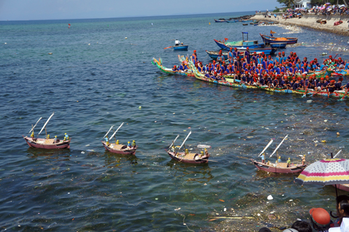 | ประชาชนบนอำเภอเกาะปล่อยเรือประมงจำลองที่ชาวประมงบนอำเภอเกาะได้ใช้และเป็นพาหนะส่งทหารไปยังหมู่เกาะHoàng Sa (Photo:chinhphudientu ) |