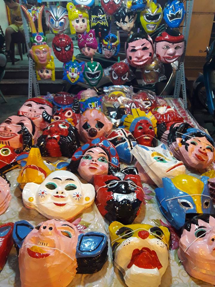 แม้จะอยู่กลางย่านขายของเล่นสมัยใหม่และน่าสนใจ แต่บูธขายหน้ากากกระดาษของคู่สามีภรรยา นาง ลาน ยังคงมีลูกค้ามาอุดหนุนอย่างคึกคัก หน้ากากเกือบ 20 ชนิด เช่นชี้แฝ่ว ถิเหนอ ตือโป๊ยก่าย เห้งเจีย กระต่ายและเสือ เป็นต้น มีสีสันหลากหลาย ดูสวยงามถูกวางขายในแผง สามีภรรยาคู่นี้ อายุกว่า 60 ปีแล้ว ซึ่งถือเป็นคู่สุดท้ายที่ยังคงอนุรักษ์อาชีพทำหน้ากากกระดาษของผืนแผ่นดินทังลองฮานอย “ตั้งแต่วันที่ 1 เดือน 8 ตามจันทรคติ พวกเราเอาหน้ากากกระดาษมาขายที่นี่ วันปกติ ลูกค้ามักจะมาบ้านของดิฉันเพื่อชมและซื้อของเล่นเพื่อเอาไปใช้ในกิจกรรมสำคัญๆ นอกจากนั้นยังมีนักเรียนและครูอาจารย์มาซื้อหน้ากากสีขาวเพื่อใช้ในการเรียนการสอน พวกเรามี 2 คนเท่านั้น ดังนั้นบางทีก็ผลิตตามความต้องการของลูกค้าไม่ทัน ถ้าเกิดฝนตก หน้ากากไม่แห้งและไม่สามารถใช้การอบได้ เพราะถ้าเอาไปอบหน้ากากจะเสียรูปทรง ดังนั้นต้องตากให้แห้งแบบธรรมชาติ”