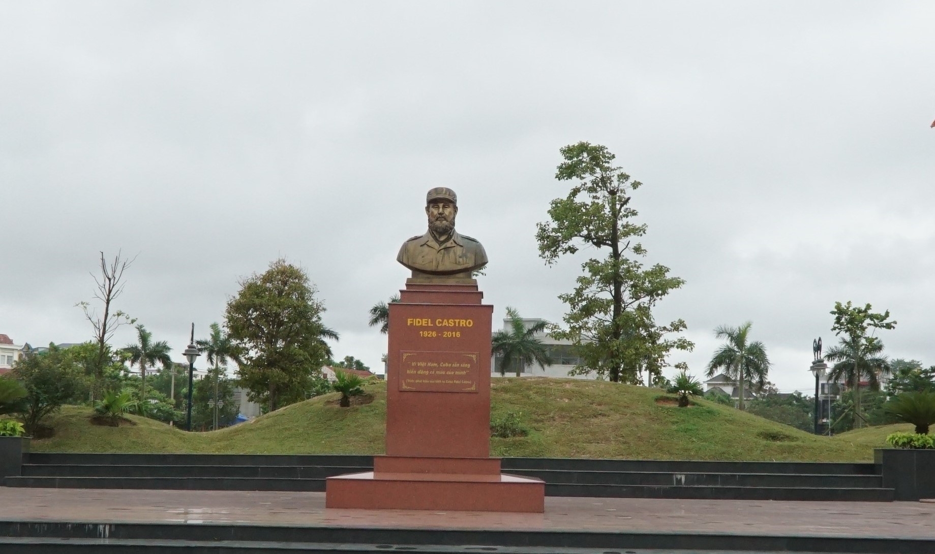 รูปปั้นประธานคิวบา ฟิเดล คาสโตในสวนสาธารณะฟิเดล เมืองดงห่า จังหวัดกว๋างจิ |