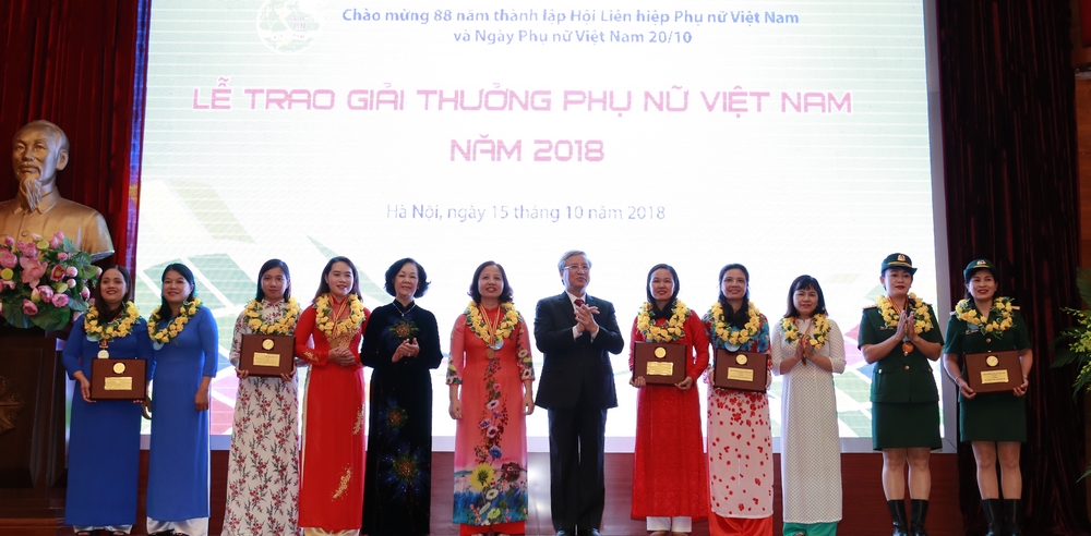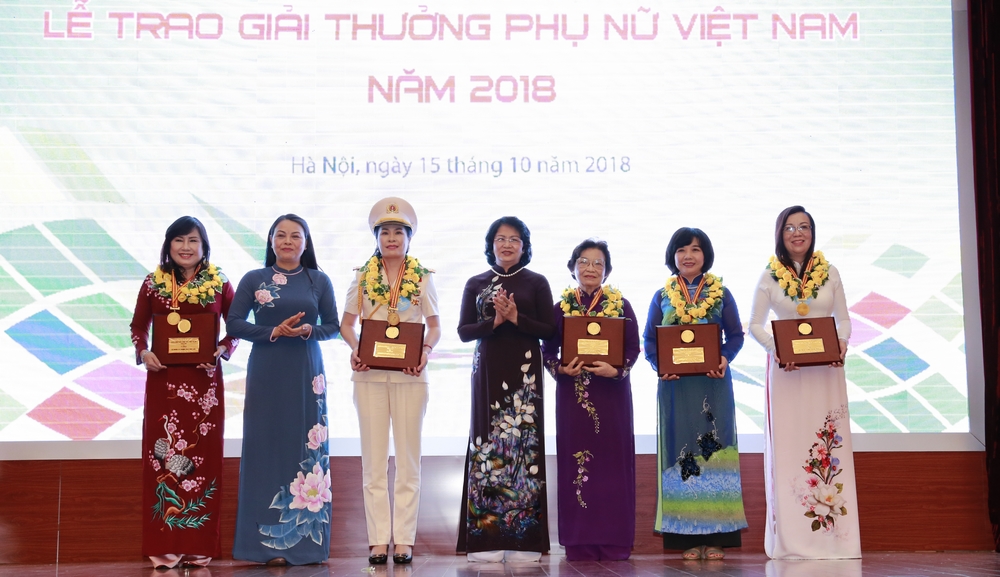 ในปี2018รางวัลสตรีเวียดนามได้มอบให้แก่5คณะและ10บุคคลที่มีผลงานยอดเยี่ยมในด้านต่างๆของชีวิตสังคมและมีส่วนร่วมต่อการพัฒนาของสังคม โดย5คณะที่ได้รับรางวัลในปี2018ได้แก่ คณะเจ้าหน้าที่และพนักงานสตรีของโรงพยาบาลแพทย์แผนโบราณจังหวัดกาวบั่ง เจ้าหน้าที่และพนักงานสตรีของสถาบันเซลล์ต้นกำเนิดสังกัดมหาวิทยาลัยวิทยาศาสตร์ธรรมชาติแห่งมหาวิทยาลัยแห่งชาตินครโฮจิมินห์ คณะเจ้าหน้าที่สตรีศูนย์ดูแลและรักษาทารกสังกัดโรงพยาบาลสูติ-นรีเวชส่วนกลาง แรงงานสตรีของเครือบริษัทตัดเย็บหมายเลข10สังกัดเครือบริษัทสิ่งทอและเสื้อผ้าสำเร็จรูปเวียดนาม และสมาชิกสมาคมสตรีกรมการต่างประเทศสังกัดกระทรวงกลาโหม