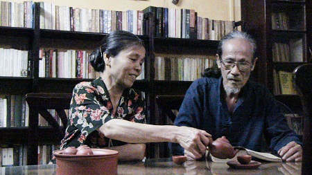 พวกเราเดินทางมาเยือนร้านกาแฟหนังสือในตอนเช้าของวันหยุด ร้านกาแฟหนังสือตั้งอยู่ในแนวทำนบโอวเกอ เมื่อเข้ามาภายในร้าน ก็รู้สึกแปลกใจเพราะชื่อของร้านคือ “กาแฟหนังสือ” แต่เรากลับไม่เห็นหนังสือสักเล่ม เห็นแต่เจ้าของร้านคือนาย เหงียนเท้แถ่ง กำลังนั่งจิบกาแฟและอ่านหนังสือรอพวกเราอยู่ ถึงแม้นาย แถ่งมีอายุกว่า 70 ปี ผมสีดอกเลา แต่เขายังคงดูกระฉับกระเฉงว่องไวและเป็นคนอารมณ์ดี หลังจากพูดคุยกับนาย แถ่ง พวกเราจึงทราบว่า เขาทำห้องอ่านหนังสือไว้ที่ชั้น 3 ซึ่งเป็นห้องบูชาบรรพบุรุษของครอบครัว ส่วนชั้น 1 ใช้ชงเครื่องดื่มและต้อนรับลูกค้า นาย แถ่งได้เล่าถึงเหตุผลที่เปิดร้านกาแฟหนังสือที่บ้านของตนว่า“สมัยเป็นเด็ก ผมหลงไหลและชอบการอ่านหนังสือซึ่งเป็นสิ่งที่ได้รับมาจากคุณแม่ คุณแม่ของผมชอบการอ่านหนังสือมากถึงแม้ผมจบการศึกษาในระดับชั้นมัธยมศึกษาตอนต้นเท่านั้น แต่ก็ตระหนักได้ว่า การอ่านหนังสือไม่ใช่เพื่อคลายเครียดเท่านั้น หากยังเพื่อเป็นการเพิ่มความรู้ให้แต่ตนเองและทำให้ผมรู้จักถึงคุณค่าของการอ่าน เมื่อโตขึ้น ผมก็เล็งเห็นถึงสิ่งที่เรียบง่ายคือ หลังจากได้รวบรวมและเก็บรักษาหนังสือที่มีค่าหายากก็คิดว่าควรแบ่งปันหนังสือเหล่านี้ให้คนอื่นๆได้อ่าน ดังนั้น ผมจึงตัดสินใจเปิดร้านกาแฟหนังสือนี้”
