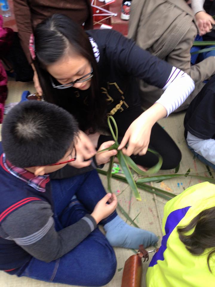 ข้างๆนั้นมีอาสาสมัคร๓ถึง๔คนกำลังสอนให้เด็ก๕คนวิธีการปั้นตุ๊กตาแป้งสี และการทำตั๊กแตนใบไม้ เมื่อได้รับแจกแป้งสีและได้ฟังการสอนของอาสาสมัครหลายคน เด็กๆก็สามารถปั้นตุ๊กตาที่น่ารักๆได้ เด็กชาย เหงวียนต๊วนแอง นักเรียนของโรงเรียนประถมศึกษานามแถ่งกงได้เผยว่า “ผมชอบปั้นตุ๊กตาแป้งสี ผมปั้นลูกหมูสีชมพู ผมจะเอาไปฝากให้พี่ของผมครับ”