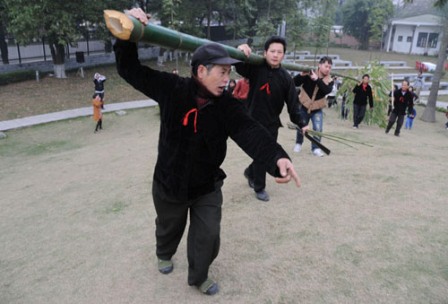 แบกลำไผ่ไปยังที่ตั้งเสาตุง