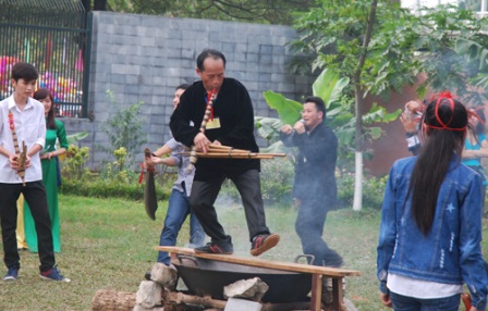 เวลา ๙ โมงเช้าที่ พิพิธภัณฑ์ชาติพันธุ์เวียดนาม ถนนเงวียนวันเฮวียน เขตเกิ่วเย้ย กรุงฮานอยมีผู้เข้าแถวยาวเหยียดเพื่อซื้อบัตรผ่านประตู โดยส่วนใหญ่เป็นนักเรียน นักศึกษาและพ่อแม่พาลูกมา เสียงเครื่องดนตรีจ่างเชื้อเชิญนักท่องเที่ยวให้ข้าร่วมงานเทศกาลฤดูในไม้ผลิของชนเผ่าเขตเขาตอนบนประเทศเวียดนาม บริเวณลานด้านหน้าพิพิธภัณฑ์หนาแน่นไปด้วยคนที่ยืนล้อมวงคอยชมการแสดงศิลปะพื้นบ้านและงานเทศกาลจำลองของชนเผ่าเขตเขาภาคเหนือเวียดนาม คุณลุงฝ่านเซินต๊า ชาวฮานอยมาชมการแสดงเปิดเผยว่า “ นับเป็นครั้งแรกที่ลุงมาที่นี่ แม้ยังไม่ได้ชมรายการต่างๆตั้งแต่ต้นแต่ลุงรู้สึกถึงจิตใจของชนเผ่าต่างๆที่แฝงไว้ในแต่ละรายการอย่างยิ่งใหญ่ ”
