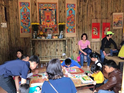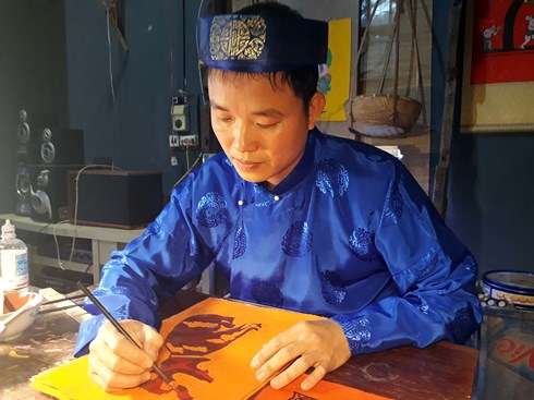ท่ามกลางเสียงดนตรีที่สนุกสนานช่วงต้นปีใหม่ประเพณี ณ ศาลา กิมเงิน เลขที่ 42-44 ถนนห่างบาก ศิลปินด่าวดิ่งจุง อายุ 38 ปี ซึ่งเป็นศิลปินรุ่นแรกของอาชีพการผลิตภาพพื้นเมืองกิมหว่างกำลังผลิต อธิบายและแนะนำภาพพื้นเมืองกิมหว่างต่อผู้ชม “ภาพพิมพ์ไม้พื้นเมืองกิมหว่างต่างๆ เช่น ภาพ “เง” ถ้ามองผ่านๆจะคิดว่าทำไม่ยากแต่จริงๆแล้วทำยากมาก หลังจากที่เราพิมพ์แล้ว เรายังต้องแต่งสีเพิ่ม เพราะนี่เป็นภาพสัตว์ จึงต้องมีความชัดเจน แต่ถ้าหากเป็นภาพทิวทัศน์ ภาพเรื่องนางเกี่ยวหรือภาพขุนนาง เราไม่ต้องแต่งสีเพิ่ม เพราะจะช่วยให้มันมีลักษณะความพื้นเมืองมากขึ้น”