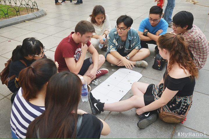 เวลาบ่าย๔โมงของวันเสาร์ บริเวณด้านหน้าอนุสาวรีย์ลี้ท้ายโต๋ ซึ่งอยู่ห่างจากทะเลสาปคืนดาบนับสิบเมตร มีผู้คนทุกเพศทุกวัยจำนวนมากมาชมการแสดงบนลานที่มีคนรุ่นใหม่๓ถึง๔กลุ่มกำลังเล่นหมากเก็บ ซึ่งเป็นการละเล่นของเด็กๆในสมัยก่อน ขณะที่สมาชิกของสโมสรMy Hanoiสวมเสื้อยืดสีดำและกางเกงยีนส์กำลังแนะนำวิธีการเล่นหมากขุมให้เด็กๆ โดยมีอุปกรณ์การเล่นได้แก่กระดานทำจากกระดาษปกแข็งและก้อนกรวดสีขาวหลายก้อน เด็กชายกู่ฟุกแอง นักเรียนของโรงเรียนประถมศึกษาเวียดนามกูบาได้เผยว่า “หนูชอบเล่นหมากขุมมากที่สุด พี่ชายของหนูได้สอนวิธีการเล่นหมากขุมครับ ตอนแรก พวกเราวางก้อนกรวด๕ก้อนในแต่ละหลุม ผู้เล่นต้องพยายามให้ได้ก้อนกรวดมากกว่าผู้เล่นอื่น หนูก็ต้องคิดอย่างรอบคอบเพื่อชัยชนะ มาที่นี่ หนูดีใจมากที่ได้มีโอกาสเล่นกับพี่ๆทุกคน”