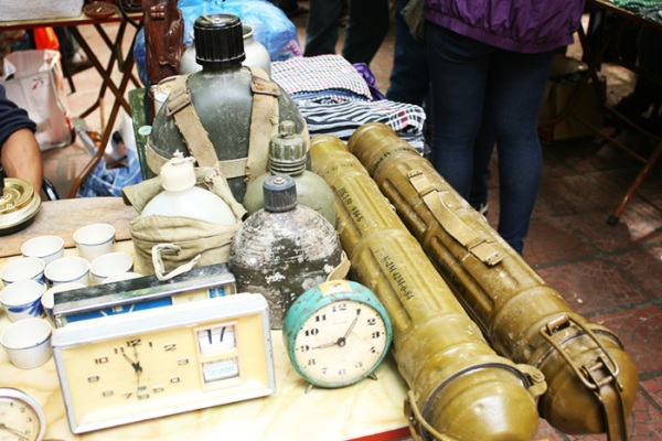 ท่ามกลางเสียงเพลงคลาสสิกและเสียงต่อรองระหว่างคนขายกับคนซื้อโดยไม่สนใจราคาเพราะคนขายนั้นไม่ใช้พ่อค้า โดยในวันธรรมดาพวกเขาต้องไปทำงานและจะมาขายที่นี่เฉพาะวันเสาร์เท่านั้นเพื่อแนะนำของสะสมของตนเองกับผู้ที่ชื่นชอบของเก่าเช่นเดียวกับตนเอง นายเหงวียนดึ๊กทั้ง เจ้าของแผงขายของใช้สมัยสงครามที่ผ่านมาเช่นปลอกกระสุนปืนใหญ่ กระติกน้ำของทหาร ชุดทหาร รองเท้ายางรถและหมวกสนามคุยกับพวกเราว่า“ เพื่อนๆช่วยหาของเก่าให้แล้วส่งมาทางเว็บไซต์ให้ส่วนหนึ่ง ผมก็ไปหาเองได้ส่วหนึ่ง ผมมาที่นี่ในวันหยุดสุดสัปดาห์เพื่อที่จะได้พบปะแลกเปลี่ยนหรือขายของที่เหลือใช้เพราะวันธรรมดาต้องทำงาน เมื่อตลาดปิดพวกเราจะทานข้าวด้วยกัน ”