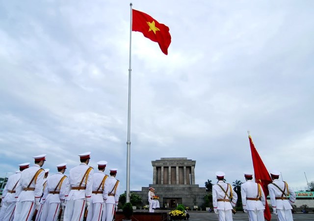 เวลา06.00น วันที่2กันยายน ณ จตุรัสบาดิ่ง เสียงเพลงชาติดังขึ้นทำให้บรรยากาศมีความศักดิ์สิทธิ์มากกว่าปกติ มีผู้คนเข้าร่วมและเข้าคิวรอถึงเวลาเปิดให้ประชาชนเข้าเคารพศพประธานโฮจิมินห์จำนวนมาก
