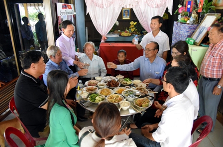 หลังจากเสร็จพิธี ครอบครัวของคุณลุงห่งก็ได้ร่วมกันทานอาหาร อวยพรให้สมาชิกในครอบครัวประสบแต่สิ่งที่ดีงาม คุณลุงห่งรู้สึกปลื้มปิติยินดีมาก เพราะในหนึ่งปีโอกาสที่ครอบครัวจะได้อยู่กันอย่างพร้อมหน้าพร้อมตากันก็มีไม่มากนัก ดังนั้นวันตรุษเต๊ตคือโอกาสเพื่อให้เขาได้คุยกับลูกหลาน สมาชิกในครอบครัวถึงแม้ทำงานที่ไหนก็ต้องไม่ลืมต้นกำเนิดของตน “ปิตุภูมิคือสิ่งที่ศักดิ์สิทธิ์ ทุกคนที่ลืมบ้านเกิดจะไม่สามารถเติบโตและพัฒนาได้ ดังนั้นเราต้องรำลึกถึงบรรพบุรุษ ปู่ย่าตายาย พ่อแม่ที่ให้กำเนิดเรา เช่นเดียวกับในช่วงต่อต้านนักล่าเมืองขึ้นฝรั่งเศสและจักรวรรดินิยมอเมริกา ไม่เพียงแต่ชาวเวียดนามจะจดจำถึงส่วนอุทิศของลุโฮเท่านั้น หากผู้ที่ถูกดขี่ขูดรีดก็จดจำถึงลุงโฮเช่นกัน ควรสอนให้ลูกหลานรู้ว่า ปิตุภูมิเป็นสิ่งที่สำคัญที่สุดเหนือกว่าสิ่งอื่นใด ปิตุภูมิคงอยู่ บรรพบุรุษก็คงอยู่ ดังนั้นการสอนลูกหลานต้องให้พวกเขาเข้าใจในรากฐานและมุ่งใจสู่ปิตุภูมิ”