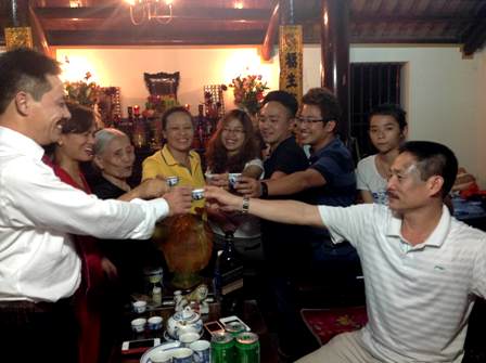 คุณเลถิ่ฮวาลูกสะใภ้ คนโตได้อนุรักษ์ประเพณีของครอบครัวคือ ซื้อของจำเป็นสำหรับตรุษเต็ตที่กรุงฮานอยเอากลับมาฝากคุณแม่และจัดวางไว้บนหิ้งบูชา คุณฮวาเล่าว่า นี่เป็นน้ำใจของลูกๆที่มีต่อพ่อแม่บังเกิดเกล้า ซึ่งทำให้ท่านรู้สึกตื่นเต้นและมีความสุข “ ลูกๆรวมทั้งลูกสะใภ้ ลูกเขยและหลานมานั่งคุยกันรอวินาทีส่งท้ายปีเก่า ซึ่งเป็นวินาทีที่หายาก ดิฉันอยากให้ทุกคนในครอบครัวไม่ว่าจะเป็นคุณแม่ พี่น้องและหลานเหลนสามัคคีกัน ซึ่งถือเป็นเกียรติประวัติของครอบครัวที่ต้องสืบสารไปตราบนานเท่านาน