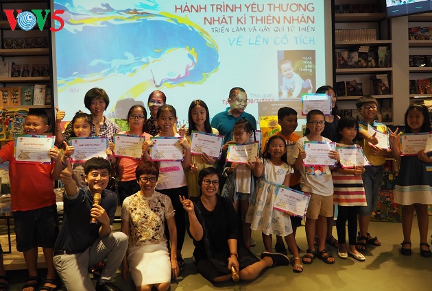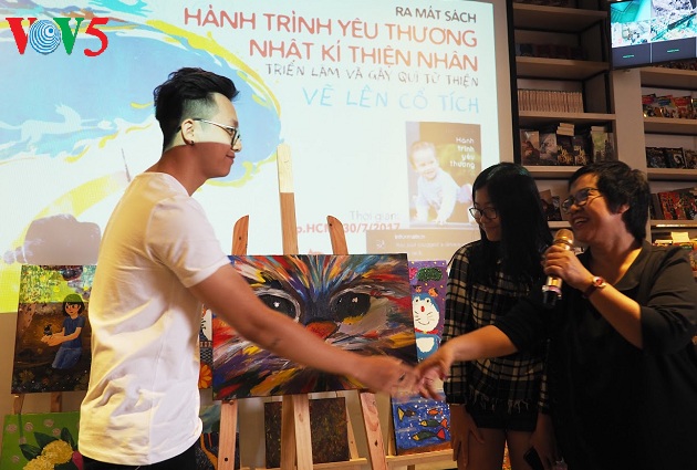 เวลา 10.00 น. ที่ร้านขายหนังสือของสำนักพิมพ์กิมโด่งสาขานครโฮจิมินห์ จิตรกรโด๋เฮืองและตัวแทนของสำนักพิมพ์ฯกำลังทำการประมูลภาพวาดของเด็กกว่า 100 ภาพที่เข้าร่วมกิจกรรม “วาดนิทาน” ที่นครโฮจิมินห์เมื่อวันที่ 23 กรกฎาคมและที่กรุงฮานอยเมื่อวันที่ 17 กรกฎาคม โดยภาพแมวชิ้นสุดท้ายถูกประมูลโดยเด็กชายเจิ่นยวีเกือง จากกรุงฮานอย “ ผมซื้อภาพนี้เพราะชอบมาก มันเต็มไปด้วยศิลปะและเหมาะกับผม และผมอยากซื้อเพื่อให้การช่วยเหลือเด็กพิการ”