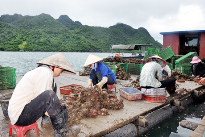 | เวินด่นได้ป้อนสัตว์น้ำที่มีเฉพาะที่นี่เช่น หอยงวงช้างและหอยนางรมให้แก่ตลาดภาคเหนือ (Photo:quangninh ) |