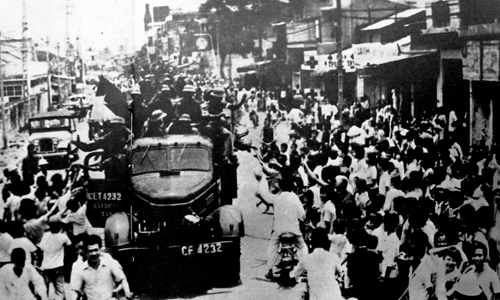 ![]() ชาวไซ่ง่อนต้อนรับทหารปลดปล่อยด้วยความยินดี
