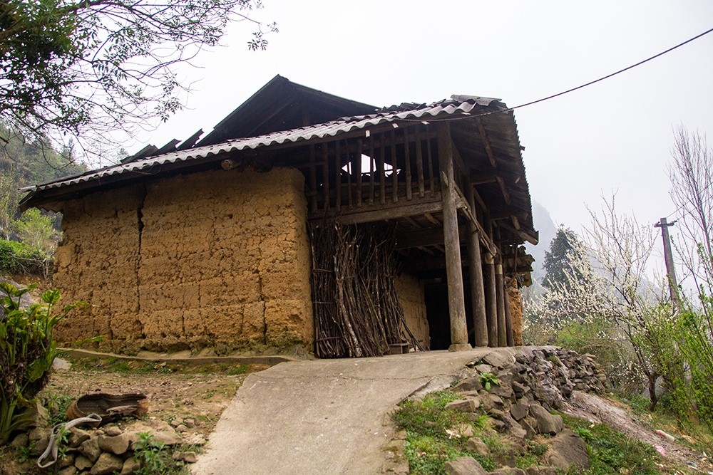 สำหรับผนังบ้าน ชาวม้งจะประกอบแผ่นไม้เป็นแม่พิมพ์แล้วใช้ดินเหนียวอัดลงไปในแม่พิมพ์( baoxaydung.com.vn) |