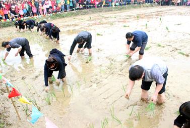 เจ้าหน้าที่ท้องถิ่นร่วมพิธีเปิดทำนาปีใหม่(langson.gov.vn)