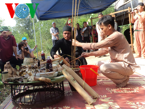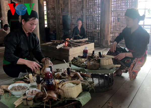 สำหรับชนกลุ่มน้อยเผ่าเออดู เทศกาลต้อนรับฟ้าร้องคืองานปีใหม่ที่ยิ่งใหญ่ที่สุดของปี ดังนั้นจึงมีการเชือดหมูและล้มวัวเพื่อทำอาหารเซ่นไหว้เทพเจ้าและบรรพบุรุษ หลังจากนั้น ชาวบ้านก็จะนำของเซ่นไหว้ดังกล่าวมารับประทาน นาย หล่อวันเกือง ชาวบ้านวังมน กล่าวว่า ในช่วงเทศกาลปีใหม่ Cham PhTrong เผ่าเออดูจะเชือกหมูหนึ่งตัวเพื่อทำอาหารเซ่นไหว้บรรพบุรุษแล้วเชิญชาวบ้านมาดื่มเหล้าและทานอาหารเพื่อฉลองปีใหม่ ซึ่งนี่ถือเป็นโอกาสให้สมาชิกในครอบครัวได้กล่าวขอบคุณเพื่อนบ้านที่ได้ให้การช่วยเหลือในปีที่ผ่านมา “ถ้าหากเป็นถาดอาหารเซ่นไหว้บรรพบุรุษของครอบครัวที่มีฐานะดีก็จะมีหมูหนึ่งตัว ถ้าหากเป็นครอบครัวธรรมดาก็จะมีไก่สองตัว เนื้อกระรอก เนื้อหนู 1-4 ตัว ข้าวหมาก เหล้า “เกิ่น” ขนมข้าวต้มมัดใหญ่ ข้าวหลาม ข้าวสองถ้วย ปลาย่างสองตัว เหล้าสองขวด เหล้า “เกิ่น” สองไหและข้าวเหนียว”