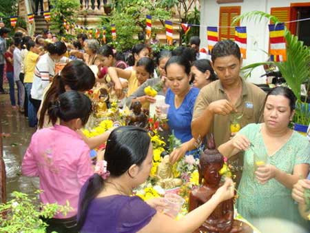 (VOVworld)- เทศกาลปีใหม่ Chol Chnam Thmay ของชนเผ่าเขมรเป็นเทศกาลที่ได้รับการรอคอยมากที่สุดของปีเพราะมีความหมายว่าเป็นการต้อนรับปีใหม่ ฤดูแล้งได้ผ่านพ้นไปเพื่อให้ชาวบ้านเตรียมเข้าฤดูการผลิตใหม่ โดยงานฉลองเทศกาลปีใหม่ Chol Chnam Thmayจะมีขึ้นภายในเวลา3วันในช่วงกลางเดือนเมษายน