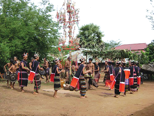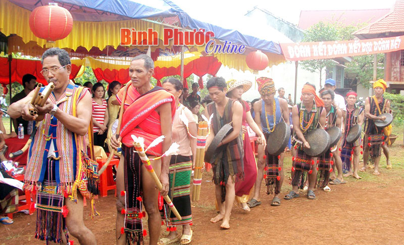 เมื่อก่อนนี้ หลังงานหมั้น1-2ปี ทั้งสองฝ่ายถึงจะสามารถจัดงานแต่งงานได้ แต่ในระหว่างช่วงเวลานั้นแม้ทุกคนในหมู่บ้านรู้ว่าคู่นี้คือสามีภรรยากันแล้วแต่ก็ยังไม่ได้มาอยู่ด้วยกัน ต่างคนต่างอยู่บ้านของตัวเองและสามารถไปมาช่วยเหลืองานบ้านหรือดูแลกันตอนเจ็บป่วยได้ สำหรับงานแต่งงาน จะต้องเตรียมควาย1ตัว นอกนั้นก็อาจจะมีหมูมีไก่ตามที่ทั้งสองฝ่ายเห็นว่าเหมาะสม แต่ในวันแต่งงานฝ่ายชายต้องเตรียมต่างหู1คู่ กระโปง1ชุด สร้อยคอและระฆังทองแดงเล็กๆ1ชุดเพื่อมอบให้แก่เจ้าสาว ส่วนทางด้านฝ่ายเจ้าสาวก็เตรียมผ้าพื้นเมืองหลายผืนเพื่อมอบเป็นของที่ระลึกให้แก่ญาติพี่น้องฝ่ายชาย และทั้งสองฝ่ายต่างร่วมจัดงานเลี้ยงแต่งงานอย่างสนุกสนาน คุณเดี๋ยวถิเกีย ชาวสะเตียงที่จังหวัดบิ่งเฟือกเผยต่อไปว่า“ในงานเลี้ยง ทั้งสองฝ่ายชายหญิงจะร่วมอวยพรให้คู่บ่าวสาวและรับประทานอาหารท่ามกลางเสียงกลองเสียงฆ้องที่รื่นเริง ผู้ที่มาร่วมงานจะได้รับแจกเนื้อ1ชิ้นโดยสื่อความหมายว่าเป็นชุมชนที่สามัคคีมีอะไรดีก็เอื้อเฟื้อแบ่งกัน”