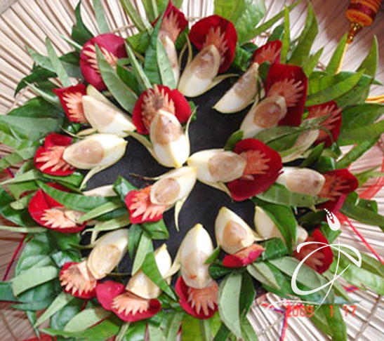 | ขันหมากที่มีหมากพลูร้อยชิ้นซึ่งเป็นสัญลักษณ์ของการใช้ชีวิตเนื้อคู่มานานแสนนานเพื่อขอรับเจ้าสาว(goldenweding.com.vn) |