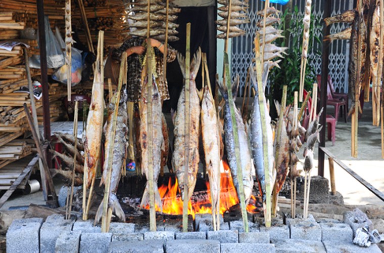 อาหารอีกอย่างที่ขาดไม่ได้ในวันงานสำคัญของชาวเหมื่องคือปลา โดยปลาสามารถทำได้หลายเมนูแต่ที่ถือเป็นอาหารจานเด็ดคือโอ๊ตโด่ โดยปลาจะถูกหมักด้วยเครื่องปรุงหลายอย่างเช่นเกลือพริกไทย ขิง นอกจากนั้นต้องผสมตะไคร้ พริกและขิงที่สับอย่างละเอียดใส่ในท้องปลา ห่อด้วยใบไม้และนำปลาทั้งตัวใส่หม้อนึ่ง เมื่อได้กลิ่นหอมของปลาและเครื่องปรุงก็ถือว่าปลาสุกแล้ว