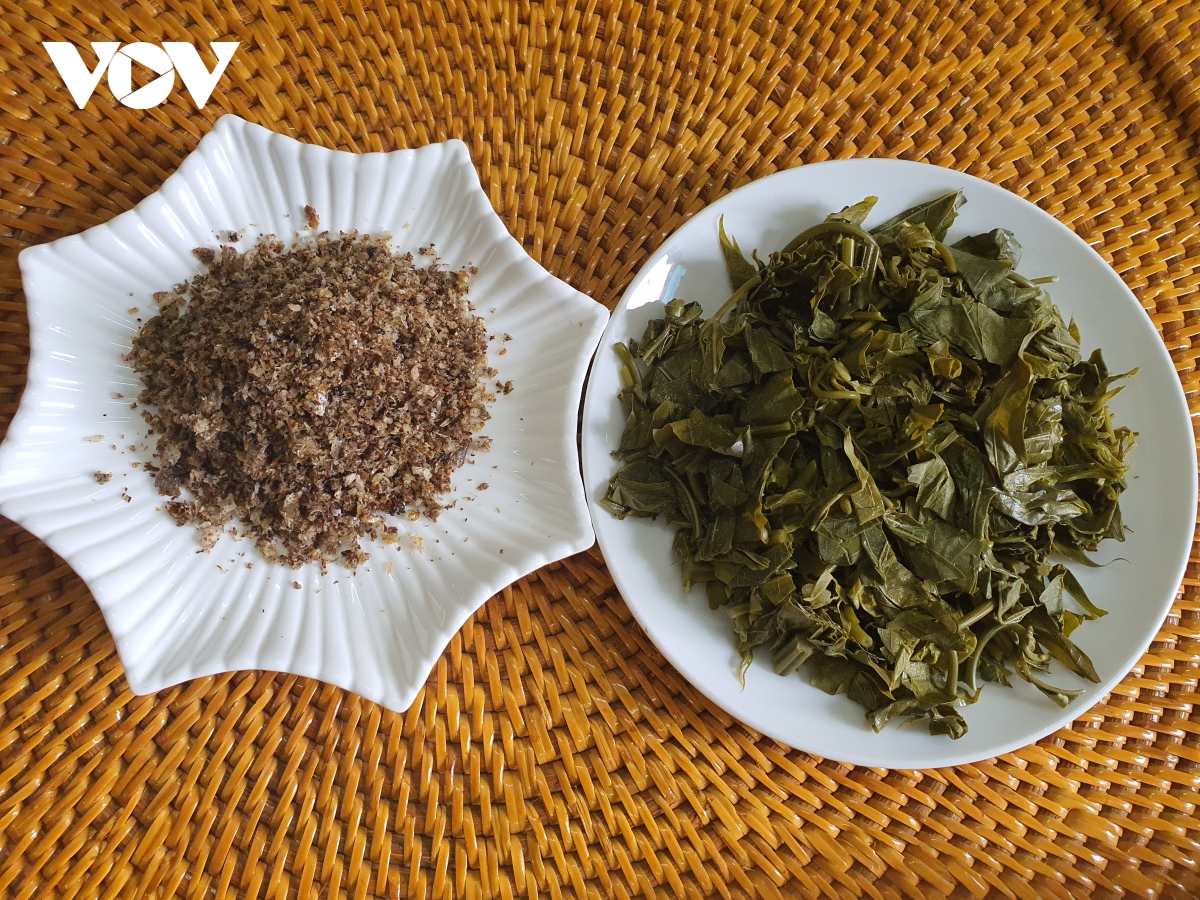 ชาวเย้าเอาแต่ส่วนยอดอ่อนและใบอ่อนสองสามใบเพื่อทำ“Mờ sán sui” |