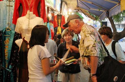 | เข้าไปยังถนน ห่างกาย ห่างห่อม ห่างบาก ห่างบ่วม ก็จะเป็นย่านค้าขายที่คึกคักด้วยสินค้าสารพัดชนิดทั้งของกิน เสื้อผ้า และของที่ระลึกที่เป็นทั้งผ้าไหม กระเป๋า ....(internet) |