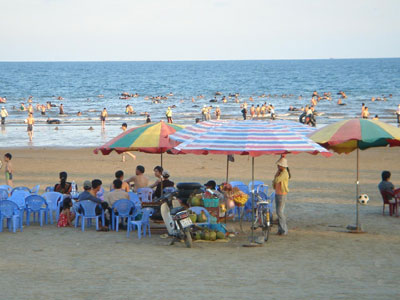 ( VOVworld )-ท่านผู้ฟังคะ ในรายการเที่ยวเวียดนามวันอาทิตย์ครั้งที่ผ่านๆมาแทงเหวี่ยนได้พาท่านไปเที่ยวสถานที่ท่องเที่ยวหลายแห่งของเมืองม้องก๊าย จังหวัดกว่างนิงห์ จุดเหนือสุดทางทิศตะวันออกเฉียงเหนือของประเทศไม่ว่าจะเป็นแหลมซาหวี ศาลเจ้าจ่าโก๋และลิ้มชิมอาหารที่อร่อยๆด้วย สำหรับรายการเที่ยวเวียดนามวันนี้ แทงเหวี่ยนจะพาท่านไปเที่ยวแหล่งท่องเที่ยววัฒนธรรม แหล่งชอปปิ้ง โดยเฉพาะหนีความร้อนไปเล่นน้ำทะเลอันชุ่มฉ่ำที่ชายหาดธรรมชาติโดยแท้ของเมืองม้องก๊าย