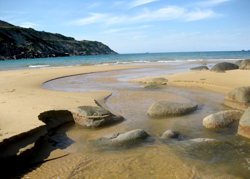 หาดทรายบ๊ายมนยาว ๔๐๐ เมตรอยู่ระหว่างภูเขาสองลูก ที่นี่ไม่มีคนอาศัยอยู่และไม่ใช่ที่จอดเรือดังนั้นจึงยังคงความเป็นธรรมชาติที่สวยงามโดยแท้ เต็นท์กางกลางหาดทรายขาวนิ่มดูคล้ายเห็ดต้นใหญ่หลายๆต้นและเติมแต่งความสวยงามให้แก่หาดทรายนี้ นักท่องเที่ยวนั่งล้อมวงคุยกันท่ามกลางลมพัดเข้ามาจากทะเลยามดึกเพื่อรอรับแสงอรุณและชมดวงตะวันขึ้นเป็นคนแรกบนหาดทรายบ๊ายมน คุณแทงเฮือง ชาวเมืองตุยหว่าเผยว่า“ พวกเรารอคอยรับแสงอาทิตย์ยามอรุณรุ่งจากทะเล ที่นี่เป็นจุดเห็นพระอาทิตย์ขึ้นเป็นจุดแรกของประเทศ ดังนั้นพวกเรารู้สึกตื่นเต้นมากเพราะไม่รู้ว่าความงามยามพระอาทิตย์ขึ้นจากทะเลจะเป็นอย่างไร ”