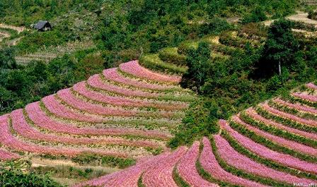 ( VOVworld )-เดือนตุลาคมยามฤดูไม้ผลัดใบ ดอกบักวีตบานสะพรั่งในทั่วบริเวณเนินเขาของจังหวัดเขตเขาตอนบนห่ายางของประเทศเวียดนาม ทำให้ผืนดินห่ายางดูเหมือนได้สวมเสื้อใหม่ ทุ่งดอกบักวีตอวดสีชมพูอ่อนยามอรุณรุ่งตามสองข้างทาง อันเป็นการเชื้อเชิญให้นักท่องเที่ยวมาเที่ยวชม