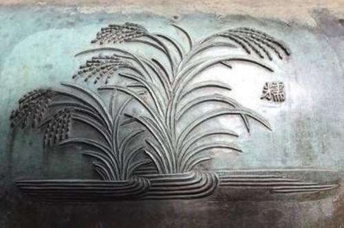 | รูปรวงข้าวสลักบนตัวพระโกศ |