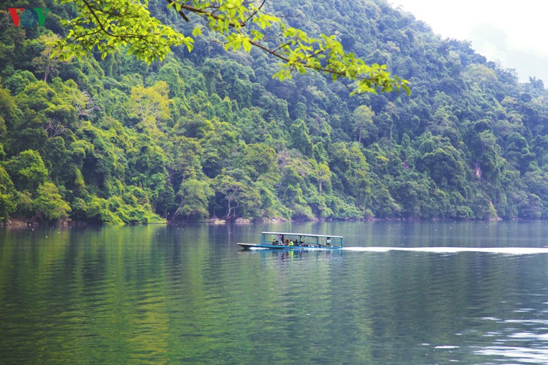 เมื่อนั่งบนเรือยนต์ล่องสระบาเบ๋ นักท่องเที่ยวสามารถ เข้าถึงจุดท่องเที่ยวต่างๆเช่น เกาะอาเตียน วิหารอานมา โดยถ้ำปวง ซึ่งเป็นจุดหมายแรกในเส้นทางท่องเที่ยวสระบาเบ๋นั้นมีความยาวกว่า300เมตร สูง30เมตร ด้านในมีหินย้อยหินงอกที่หลากหลายรูปแบบที่แปลกปลาด ที่นี่เป็นแหล่งอาศัยของค้างคาวกว่า23ชนิดรวมจำนวนมากถึงหลายหมื่นตัว ที่น่าสนใจอีกคือที่ถ้ำปวง นักโบราณคดีได้ค้นพบโบราณวัตถุและร่องรอยของมนุษย์สมัยดึกดำบันยุคหินเก่าเมื่อ2หมื่นปีก่อนรวมถึงร่องรอยของราชวงศ์หมากในช่วงปลายศตวรรษที่16 คุณเจิ่นแทงตุ่ง นักท่องเที่ยวจากฮานอยกล่าวว่า"สิ่งแรกที่ผมประทับใจคือทัศนียภาพธรรมชาติของป่าเขาที่สูงตระหง่านและลี้ลับ ซึ่งสร้างความเร้าใจให้ทุกคนอยากมาเที่ยวมาสัมผัสค้นคว้าด้วยตนเอง ในถ้ำมีหินงอกหินย้อยที่หลากหลายรูปรูปแบบโดยเฉพาะมีชั้นหินที่ทับซ้อนกันเหมือนนาบันได น่าทึ่งจริงๆ"