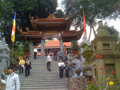 ระหว่างทางขึ้นวัดด่งหรือวัดทองแดงบนยอดภูเอียนตื๋อจะมีวัดหลายๆแห่งไม่ว่าจะเป็นวัดฮวาเอียน หมดม้าย บ๋าวส่ายและเวินเตียน ที่นักท่องเที่ยวสามารถแวะมาจุดธูปขอพรและพักผ่อนเพื่อคลายความเหนื่อล้าที่ต้องเดินขึ้นบันใดในระยะทางยาวกว่า ๑ พันเมตร คุณแบ๊กเหิป นักท่องเที่ยวคุยกับพวกเราว่า “ เมื่อขึ้นวัดด่งหรือวัดทองแดงเวลาตี ๕ นั้นท้องฟ้ายังมืดแต่รู้สึกจิตใจสงบเหมือนได้อยู่ในดินแดนแห่งพุทธศาสนาที่สมถะมาก ”
