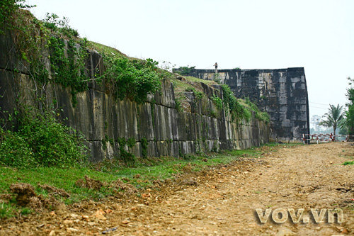 | กำแพงราชวงศ์โห่ทำจากหินสกัดเป็นก้อนสี่เหลี่ยมขนาดใหญ่ |