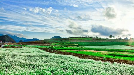 ( VOVworld )- หุบเขาหมกโจว์( Moc Chau ) ตั้งอยู่เหนือกว่าระดับน้ำทะเล ๑,๐๕๐ เมตร ที่นี่มีอากาศของเขตโซนร้อนและได้ฉายาว่าเมืองแห่งดอกไม้นานาพันธุ์ จึงเป็นจุดหมายปลายทางของนักท่องเที่ยวที่ชอบการพักผ่อนหย่อนใจและค้นหาธรรมชาติ มาเที่ยวหม็อกเชาในช่วงนี้ นักท่องเที่ยจะได้เพลินตาเพลินใจกับทุ่งดอกไม้งามหลากหลายสีสัน