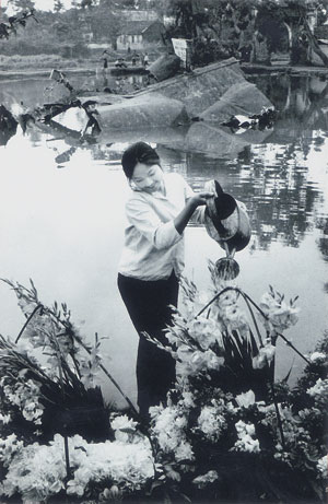 | สาวหมู่บ้านหงอกห่ารดน้ำดอกไม้ ที่ทะเลสาบฮิวเตียปที่มีซากเครื่องบินบี ๕๒ ( วันบ่าว ) |